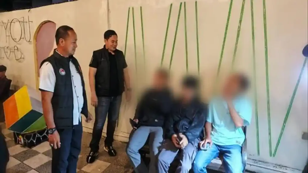 TES URINE — Petugas Polres Bangka Selatan melakukan pemeriksaan dan tes urine terhadap sejumlah remaja saat KRYD di salah satu lokasi hiburan malam di Kecamatan Toboali, Sabtu (14/2/2026) malam. Dalam kegiatan tersebut, polisi mengamankan dua remaja yang membawa senjata tajam dan satu remaja dinyatakan positif narkotika. (Istimewa/ Dok Budi)