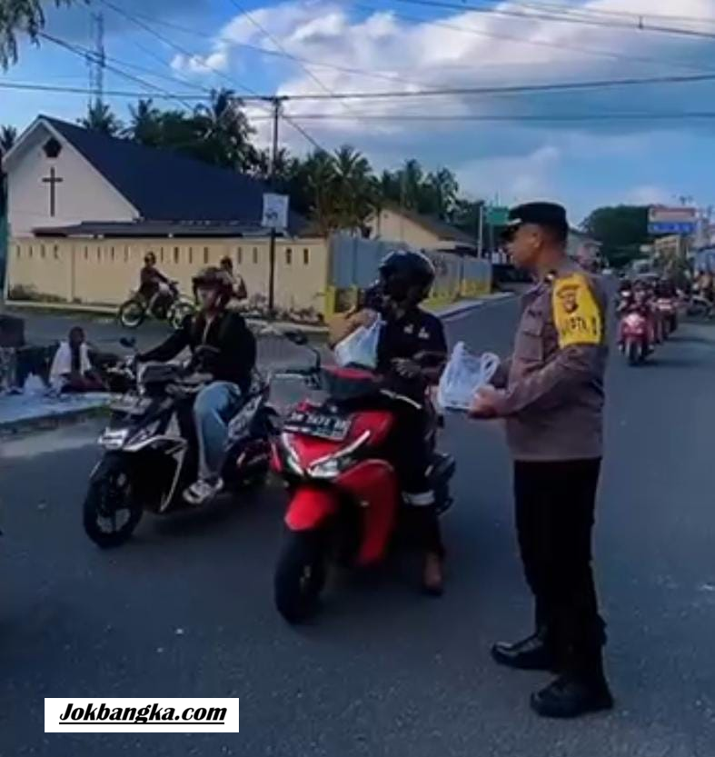 JokBangka – #BANGKA – #Dalam #semangat #menyambut #bulan #suci #Ramadan 1447 H/2026 M, #Polres Bangka menggelar kegiatan sosial yang menggabungkan patroli kamtibmas sekaligus pembagian takjil gratis menjelang waktu berbuka puasa. Kegiatan ini digelar pada hari Kamis (22/2/2026) sore sebagai upaya unik menjaga keamanan sekaligus mendekatkan diri kepada warga masyarakat.